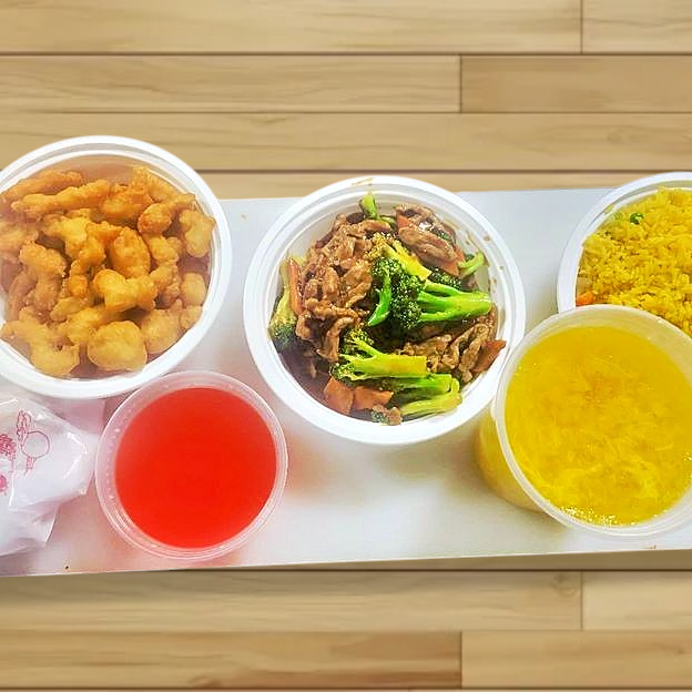 General Tso's Chicken,Chicken w. Broccoli,Shrimp Lo Mein,Pepper Steak w. Onion,Sweet & Sour Chicken